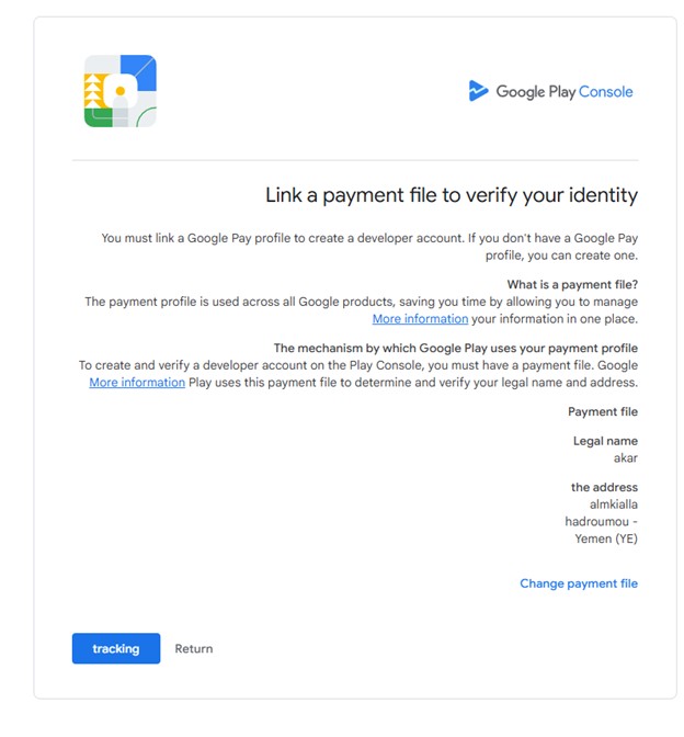 They will ask for some specific information, such as personal information or company data, in addition to your public developer name, support email address, and your country. Google requires National ID card and official documents to link to your Google Pay account information.